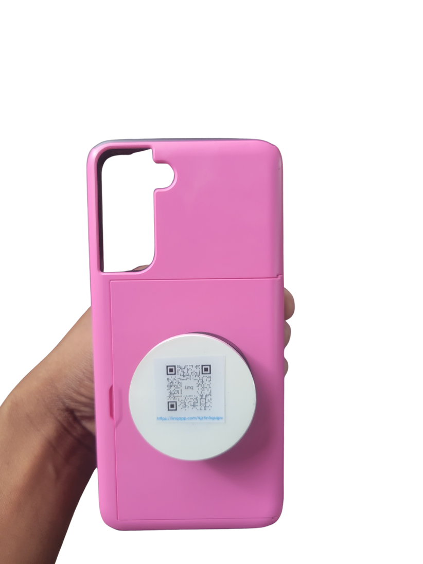 Instead of having your Digital information on a Key Chain, we put it on the back of your phone. Just tap or scan the holder and you are go to go!