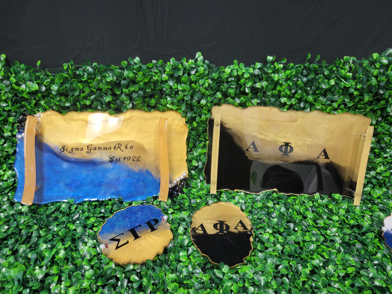 Represent your organization with class. Have this on your coffee table to for protection and swag. Comes with pearl or fire glass embellishments.