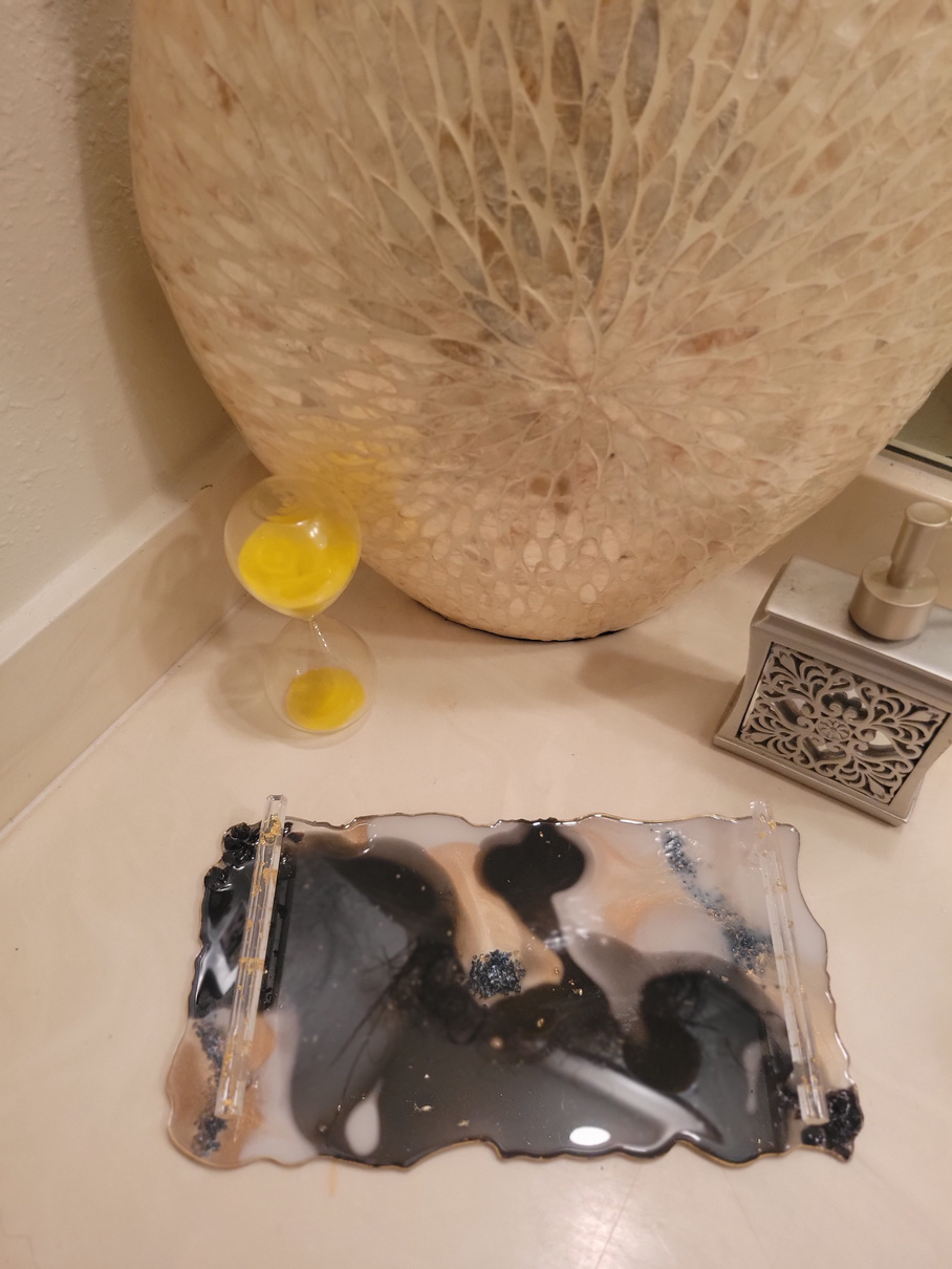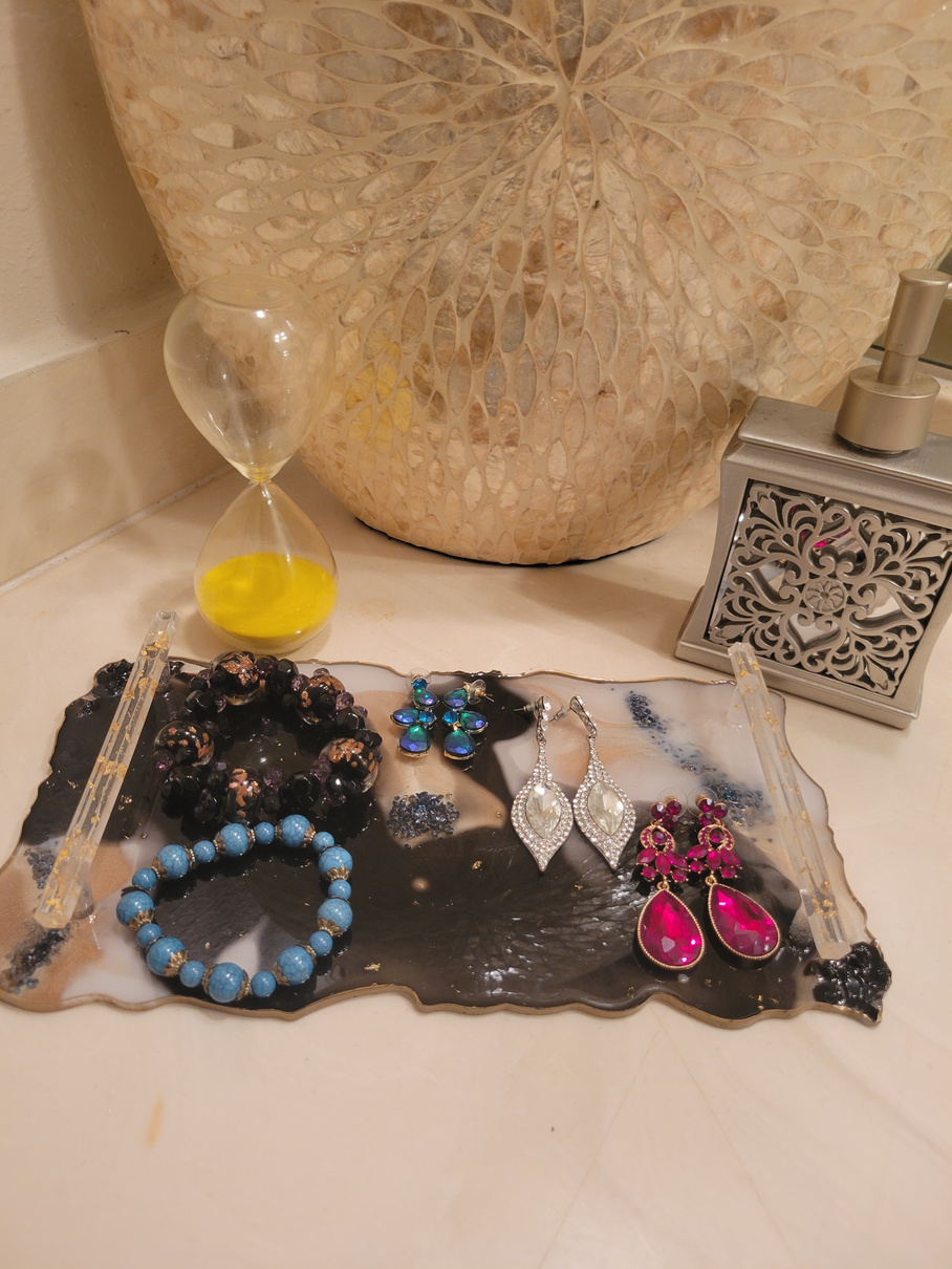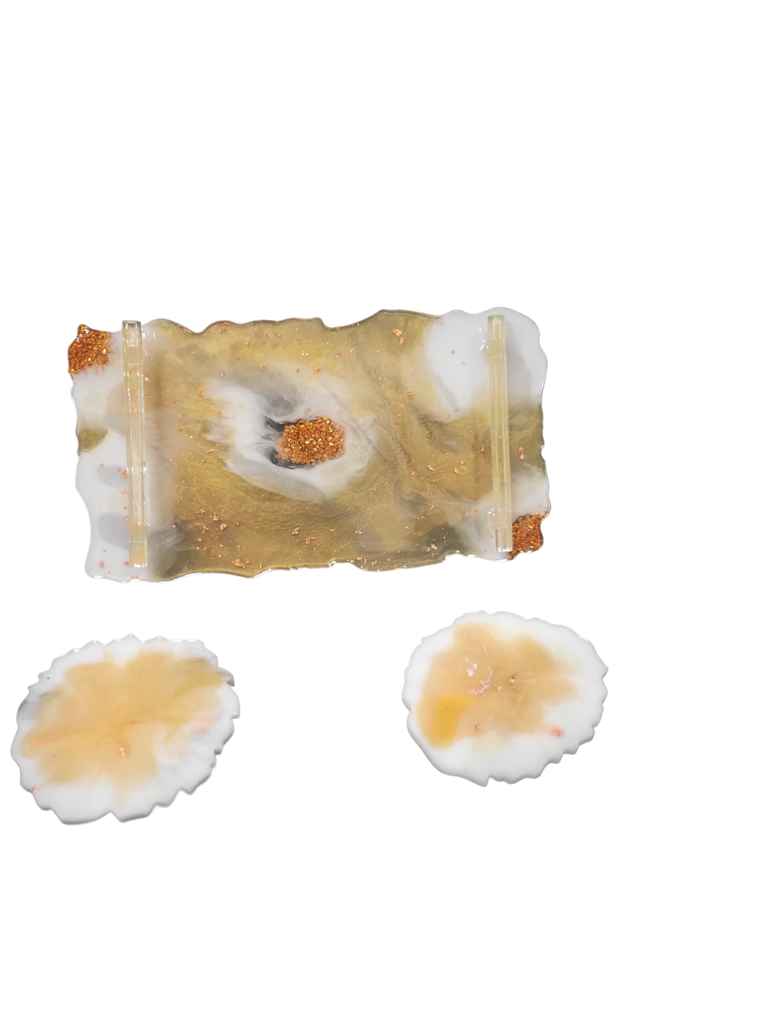 Geode tray with metal handles and Matching Wine Holder. Come with 2 matching coaters